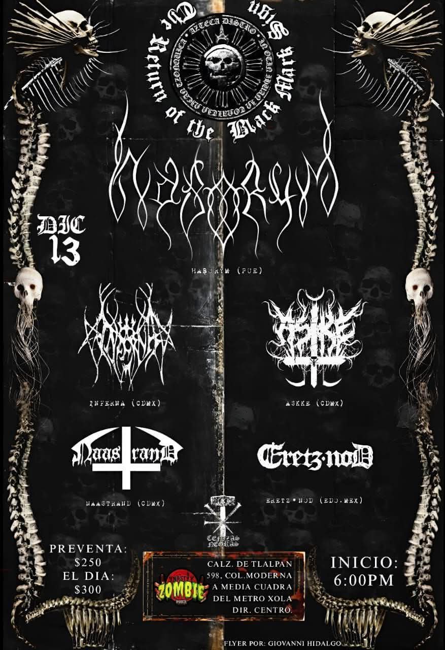 + Outlaw Orthodox Black Metal desde Brasil, THEM banda de Post Black Metal desde Tijuana y Thanathoumbra banda de Black & Roll de CDMX.