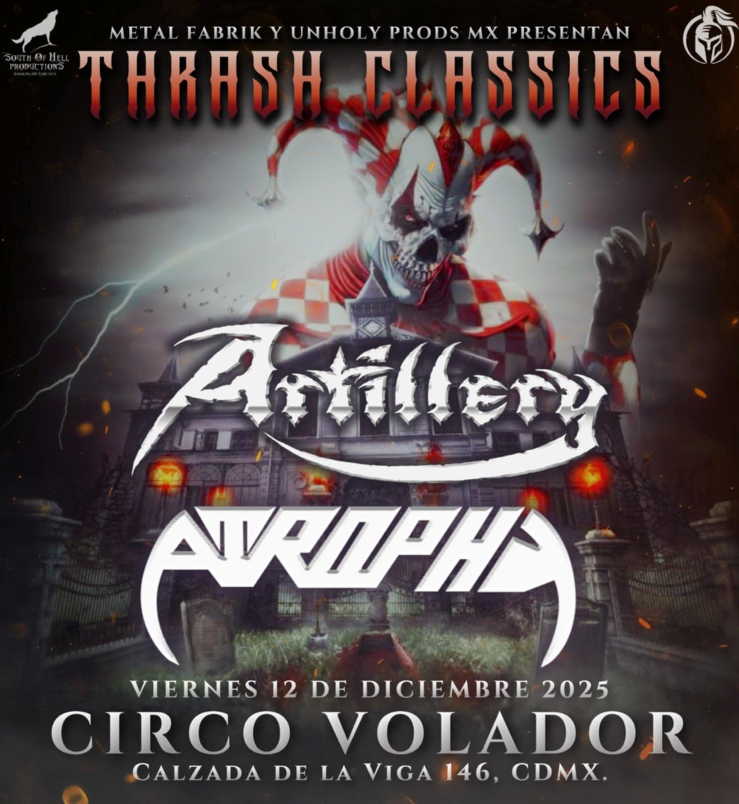 Metal Fabrik y Unholy Prods Mx, presentan "Thrash Classics" con Artillery y Atrophy, 12 de diciembre en el Circo Volador de la CDMX.